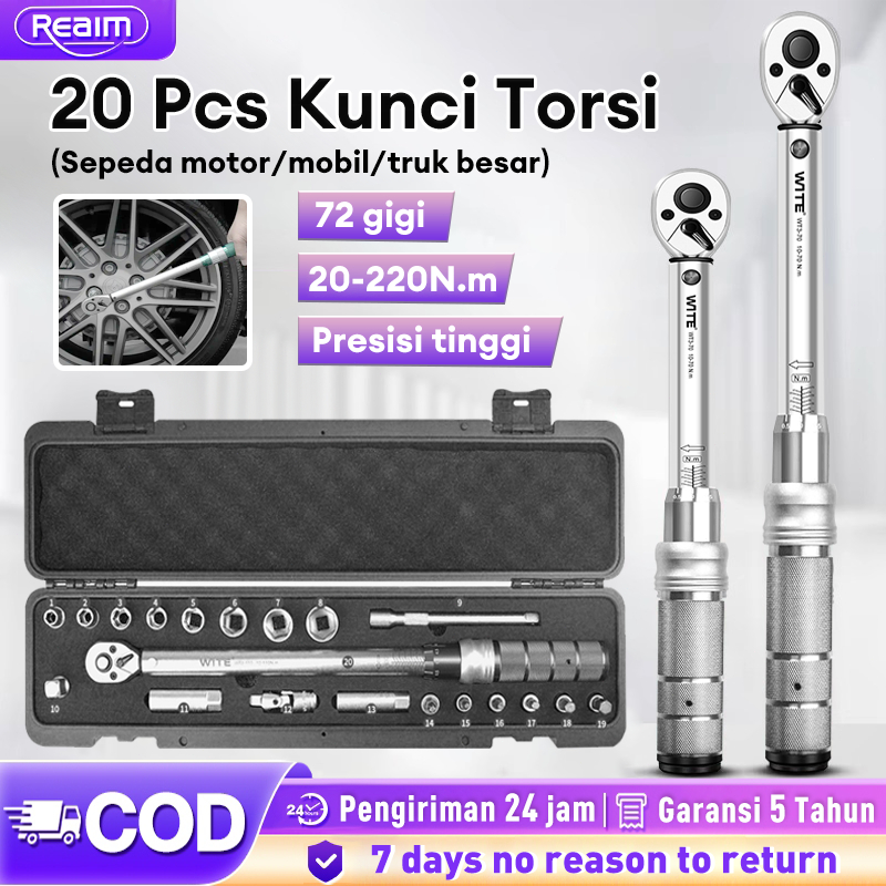 REAIM Tire Repair Kunci Torsi Sepeda 3/8 1/2 Drive Persegi 20-220N.M Ratchet Wrench Tire repair Tool Torsi Preset Torsi