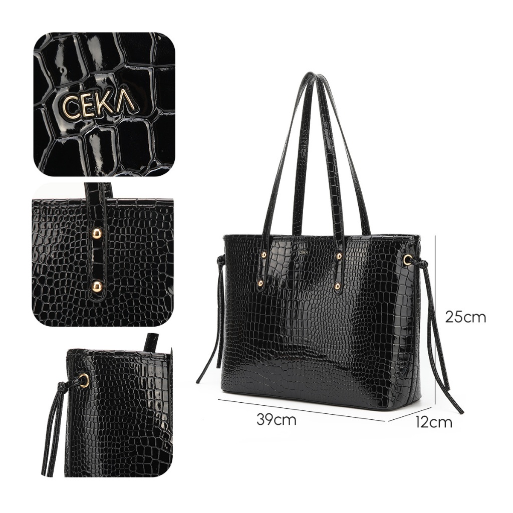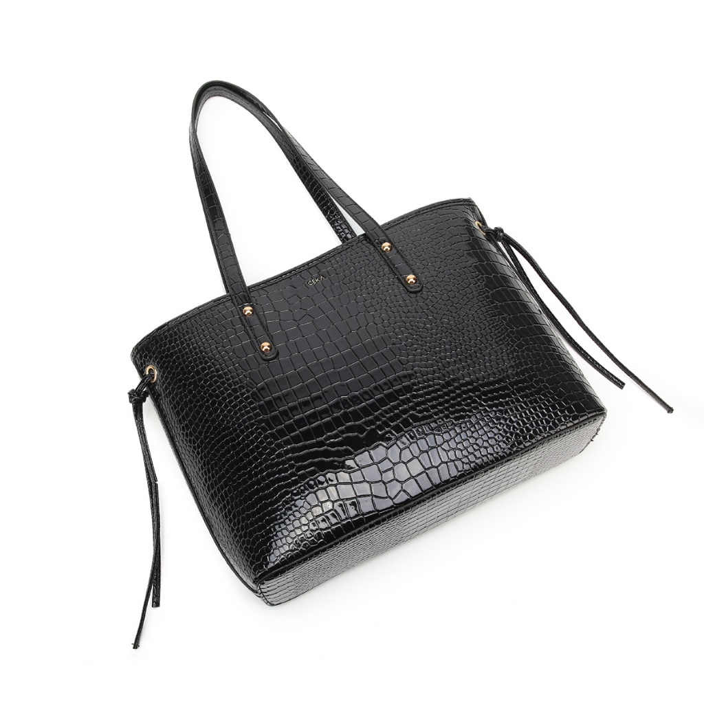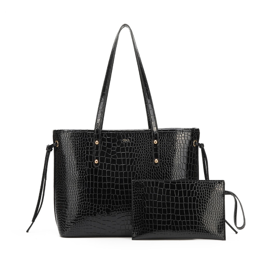 Ceka Tas Wanita Tas Selempang Totebag Wanita 2 In 1 Tas Jinjing Shoulder Bag Kulit Croco Hitam - Federika Bag