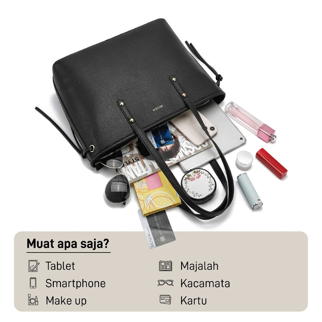 Husen Tas Totebag Wanita 2 In 1 Tas Kerja Kuliah Jinjing Shoulder Bag Resleting - Ashley Atalita