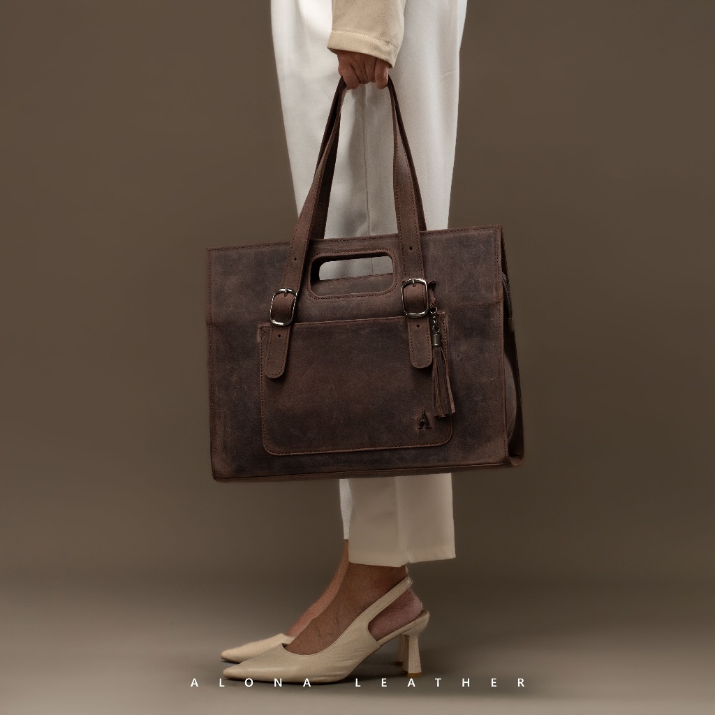 Alona Leather Althea Bag - Totebag Wanita Kulit Sapi Asli Free Random Gift