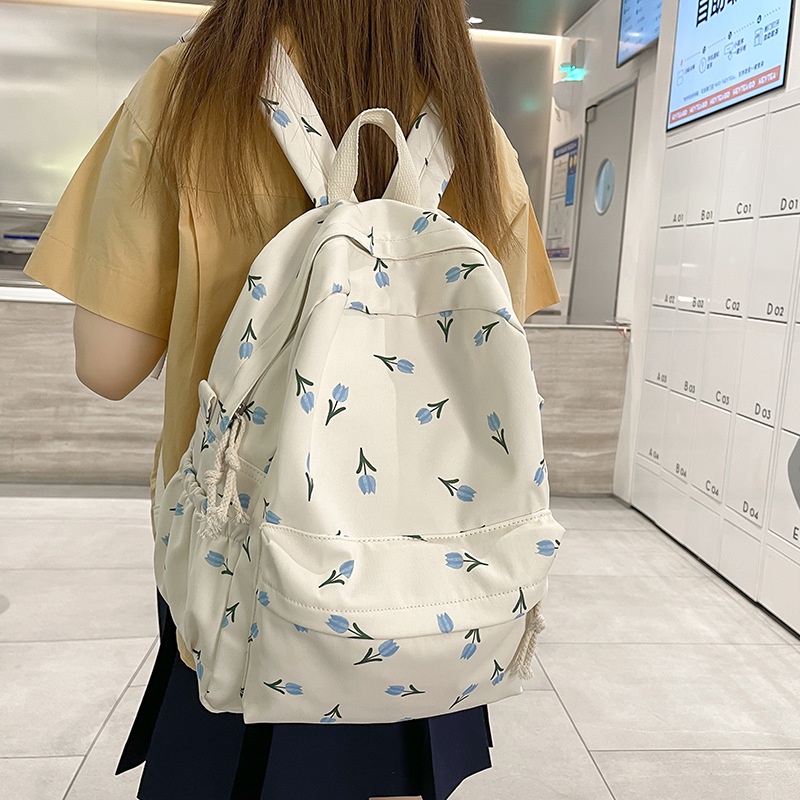 Mismi Sharon Bag Tas Ransel Wanita Motif Flower Korean Style Backpack Sekolah Perempuan Stylish - 19X