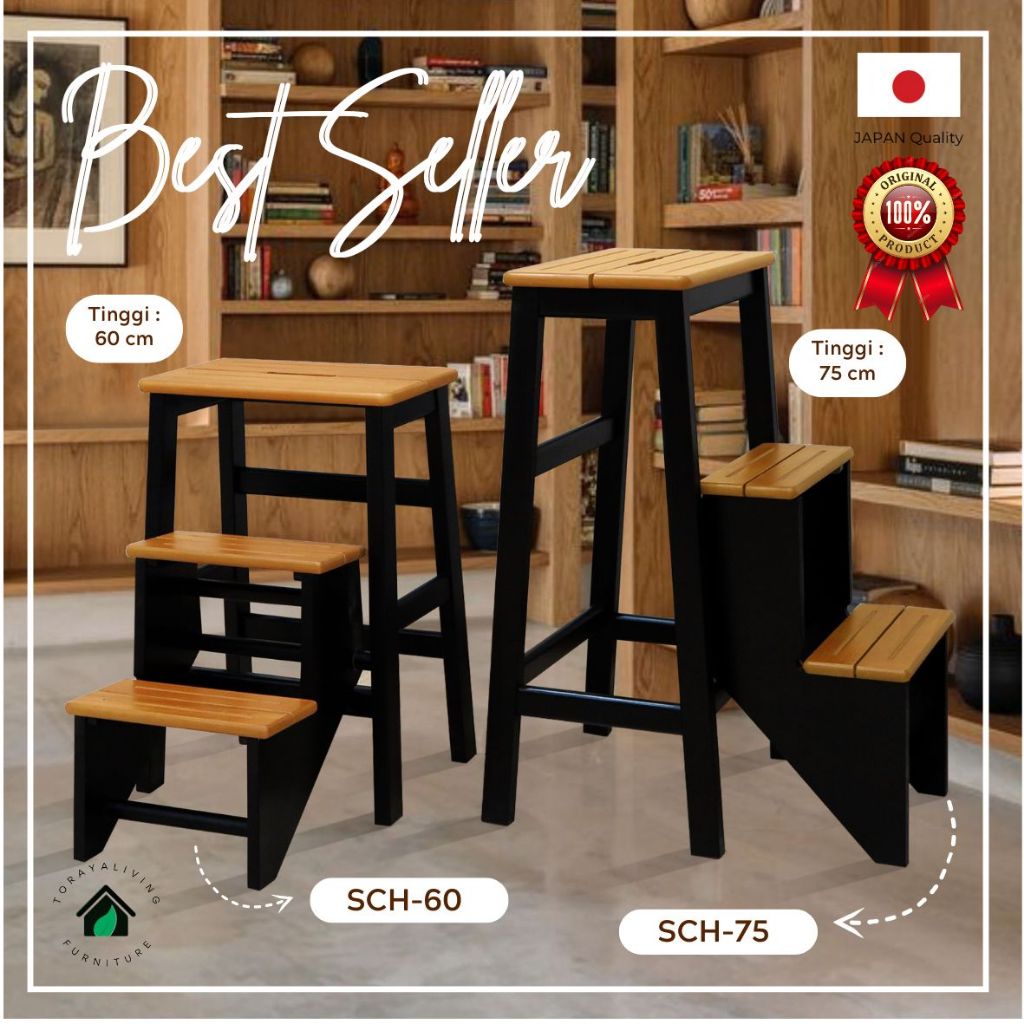 Toraya Tangga Lipat Kayu Tinggi 60 cm Tangga Lipat/ Bangku/ Tangga Lipat Estetik/ Step Chair SCH-60
