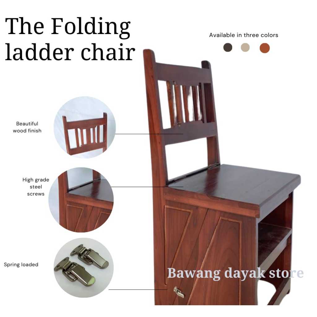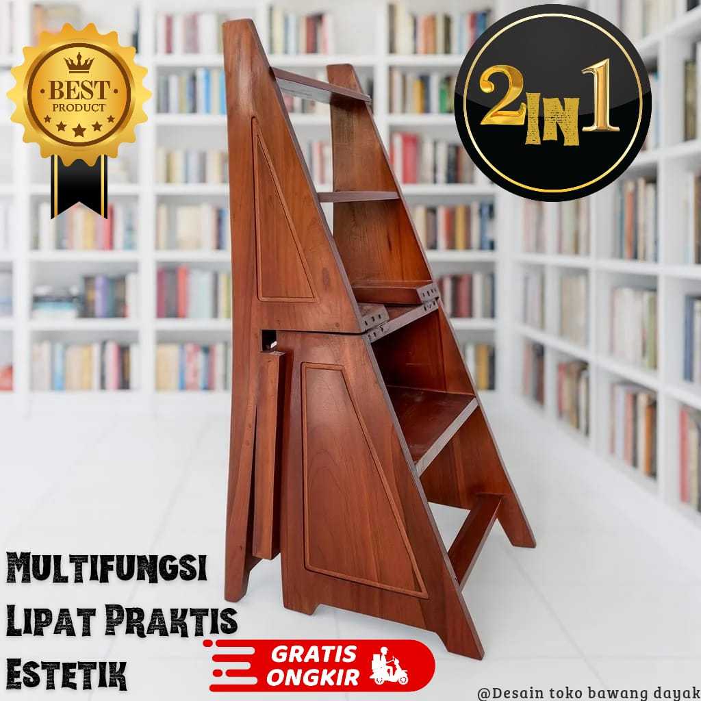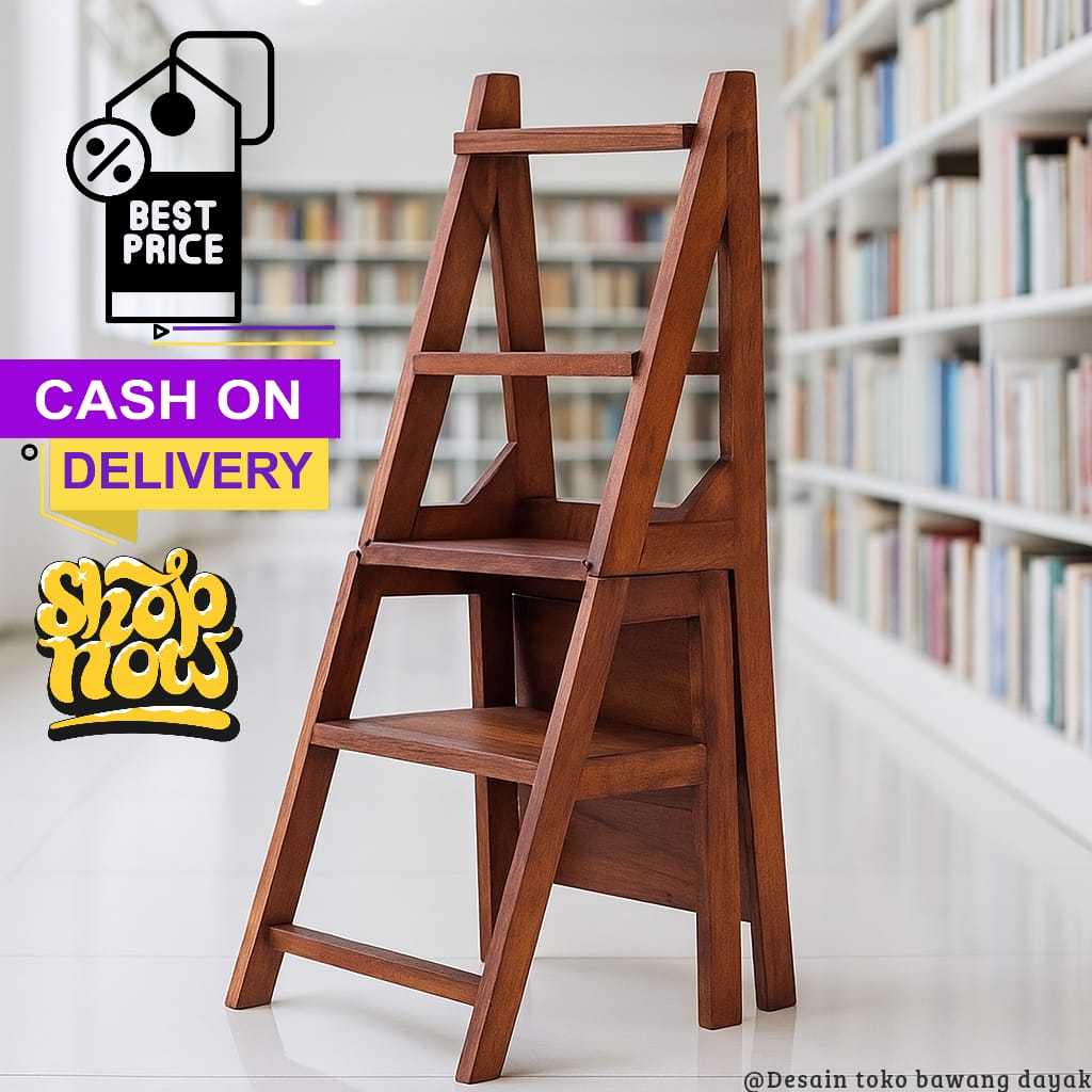 Kursi Tangga Lipat Anti Goyang Kayu Bangku Portable 2in1 4 Anak Tangga Dapur Konter Perpustakaan