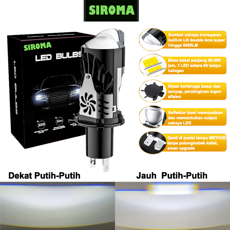 SIROMA Premium Lampu Utama LED H4 Projector Biled Dengan Devi Untuk Mobil/Motor