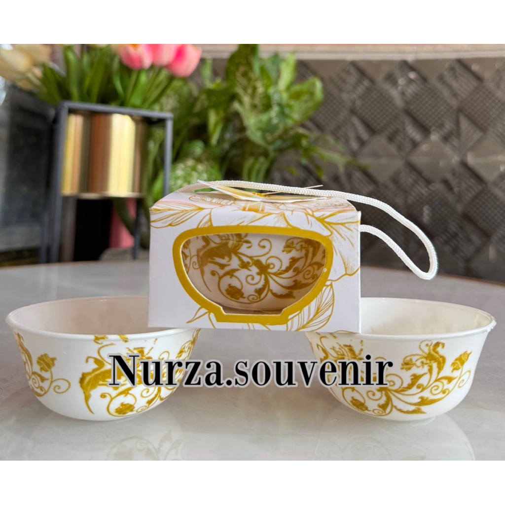 Souvenir Pernikahan Mangkok Motif Batik Bunga Coklat Kemasan Box Cantik Isi 50Pcs