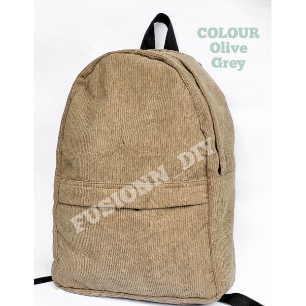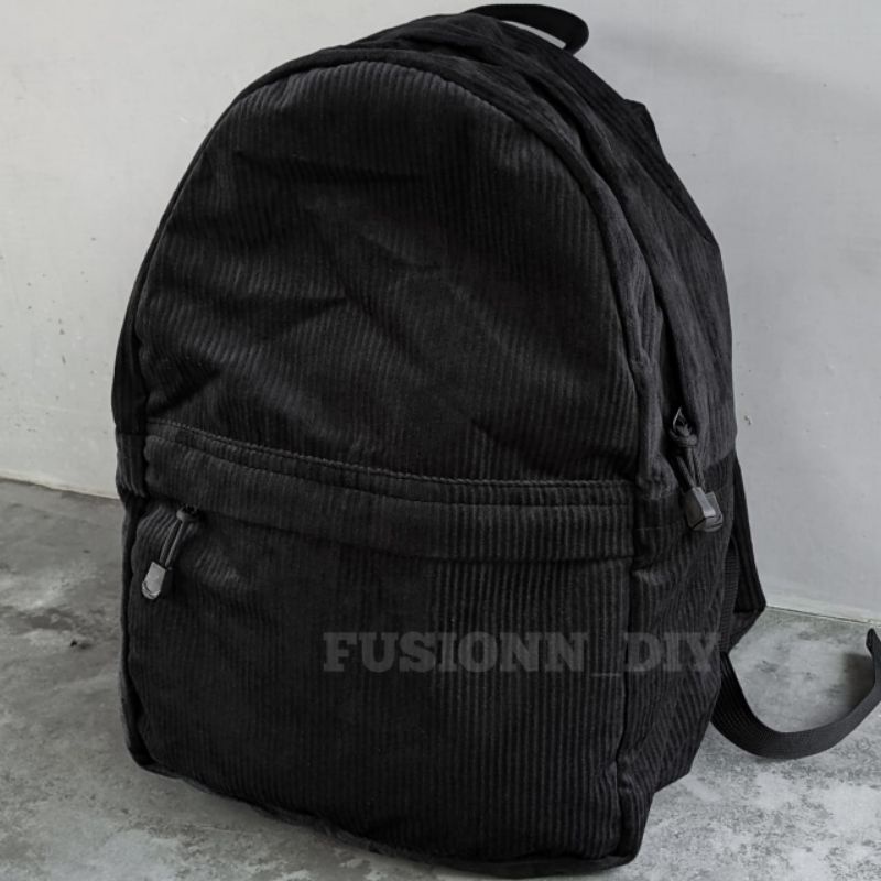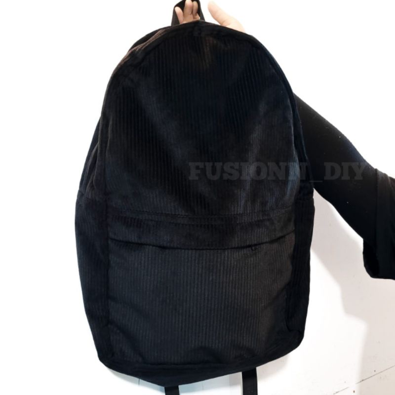 Tas Ransel Bahan Kain Corduroy Warna Hitam - Tas Sekolah Kuliah School Bag Unisex - Backpack Laptop Pria Wanita