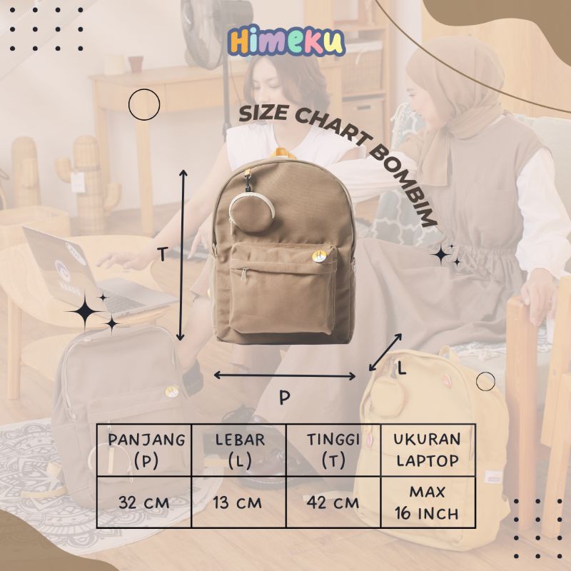Himeku Bombim Backpack - Tas Sekolah Big To Jumbo - Tas Muat Banyak - Ransel Kanvas Pria Wanita