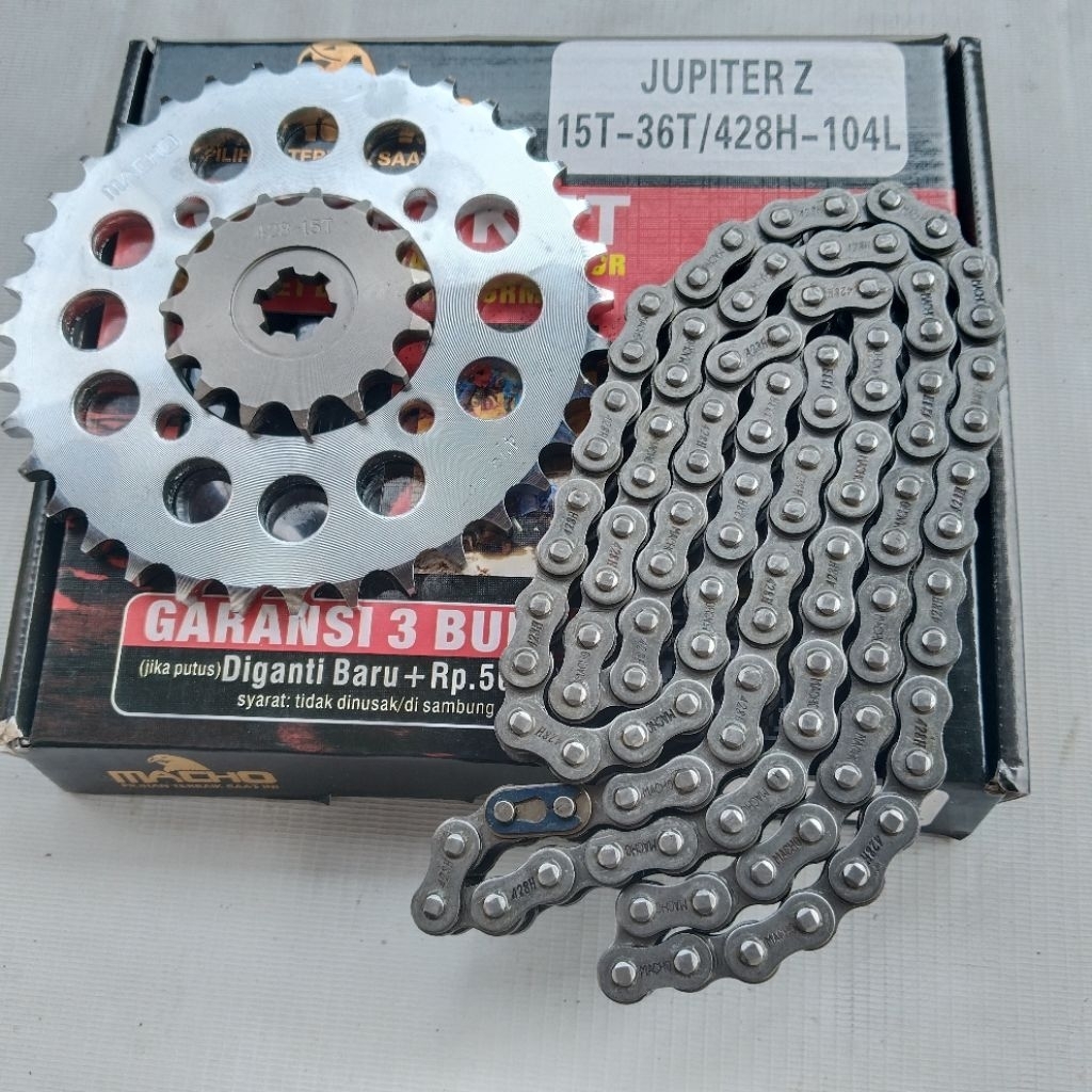 GEAR SET GEARSET JUPITER Z JUPITER BURHAN 15T/36T 428H 104L ORIGINAL-MERK MACHO