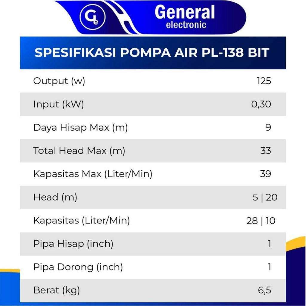 [MALL] Gratis Ongkir Shimizu PL 138 BIT Pompa Air Otomatis BIT Mesin Air Sanyo Nasional Panasonic jet pump