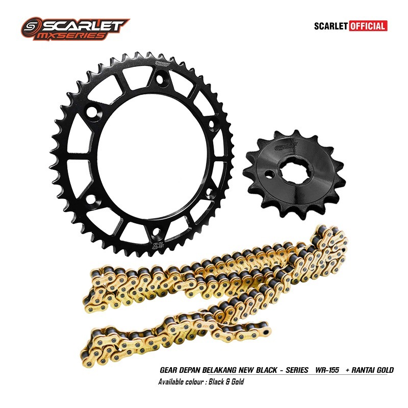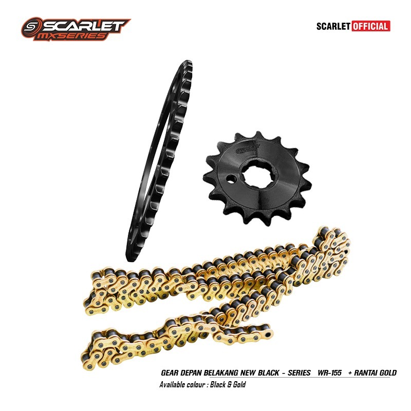 Scarlet Racing - Gear Gir Set Depan Belakang Black Series WR 428 Plus Rantai 150l