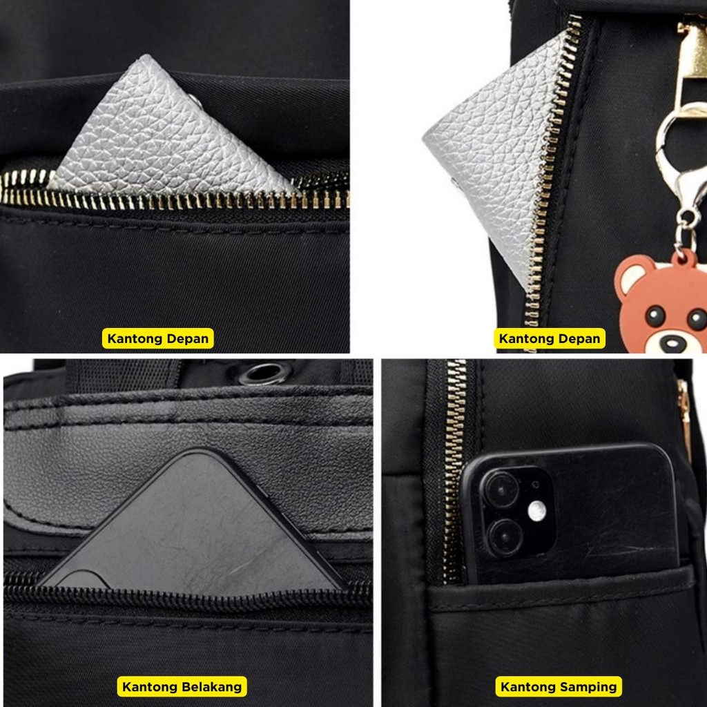 Hanami Tas Ransel Wanita Backpack Korea Anti Air Hitam Gendong Punggung Ramasa Ta602B5 Sekolah Kuliah Kerja Cewek Remaja