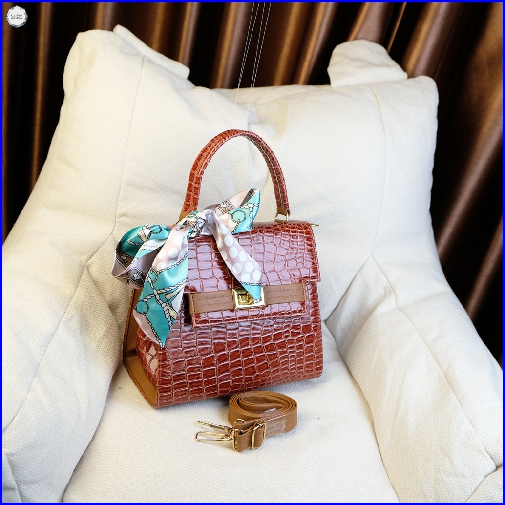 Luna Aura Tas Kotak Mini Wanita Quensa New Croco Glossy Dk 49 Tas Kekinian Tas Fashion Tas Ootd