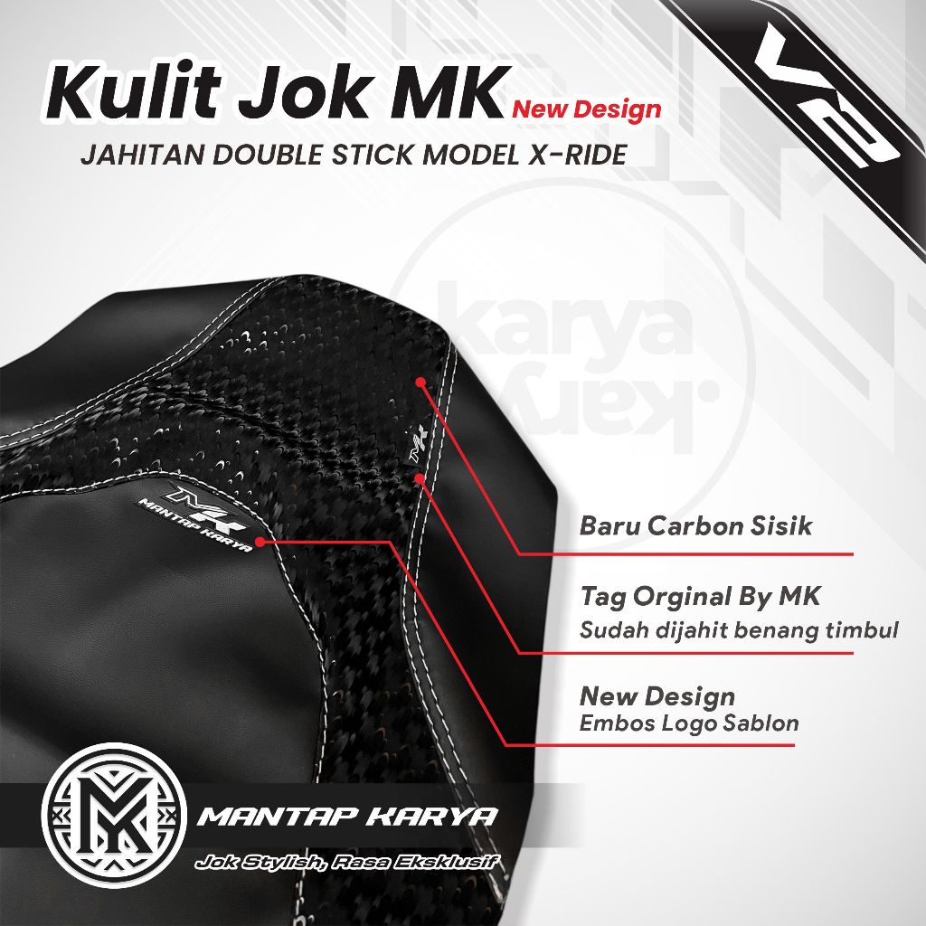 KULIT JOK MOTOR MOTIF CARBON 3D MANTAP KARYA V2 ORIGINAL BY MK