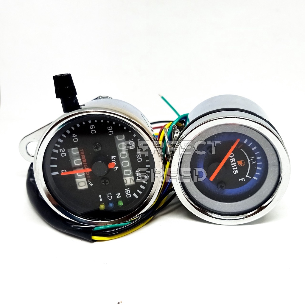 PROMO PAKET SPEEDOMETER + FUEL METER MODEL BULAT CROME UNIVERSAL
