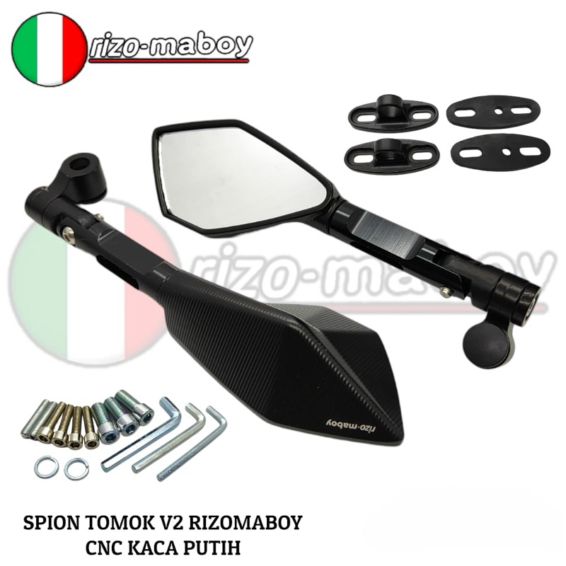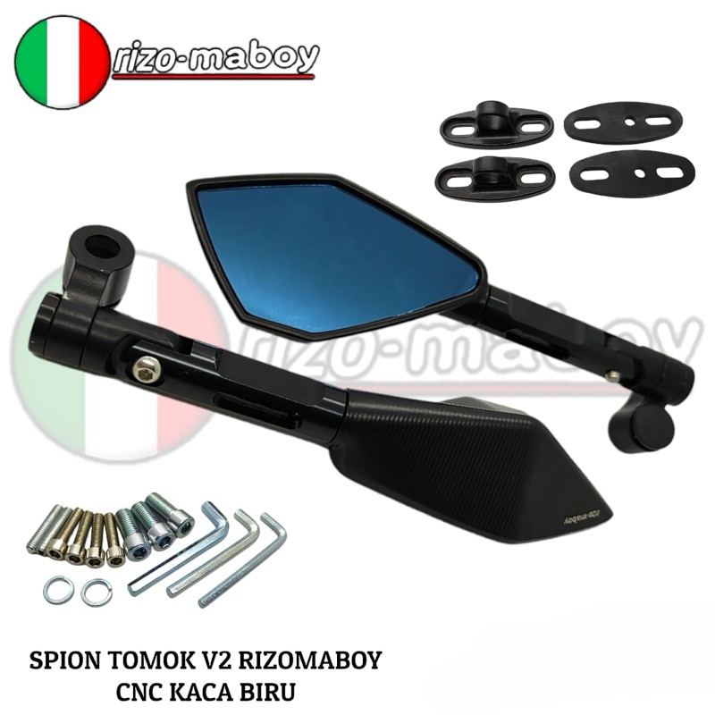 Rizo-maboy Racing - Spion V2 Rizo-maboy Full CNC Black Series Kaca Biru Dan Kaca Putih Universal Semua Jenis Motor
