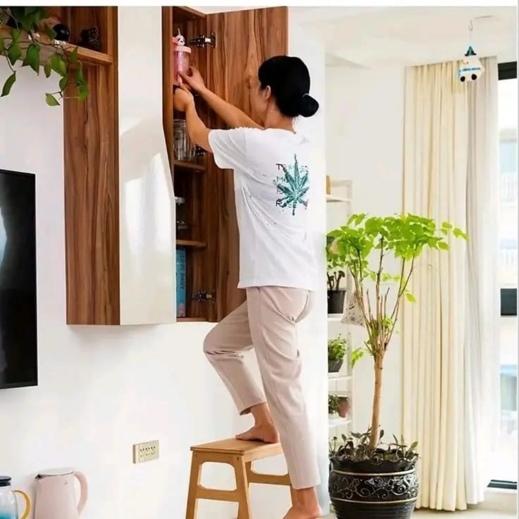 STOK Kursi Tangga Lipat Kayu Solid Mahoni 2in 1 Estetik Kokoh