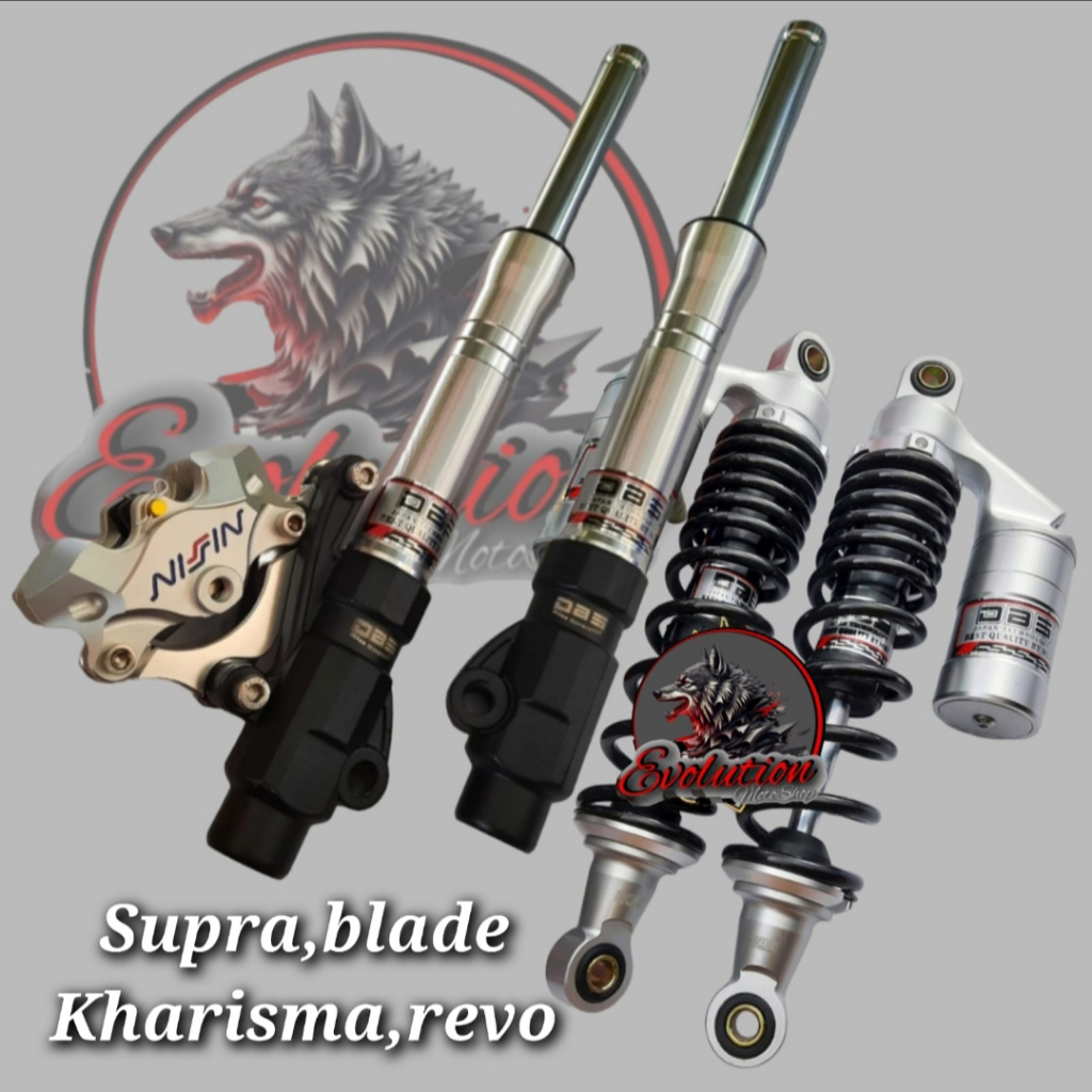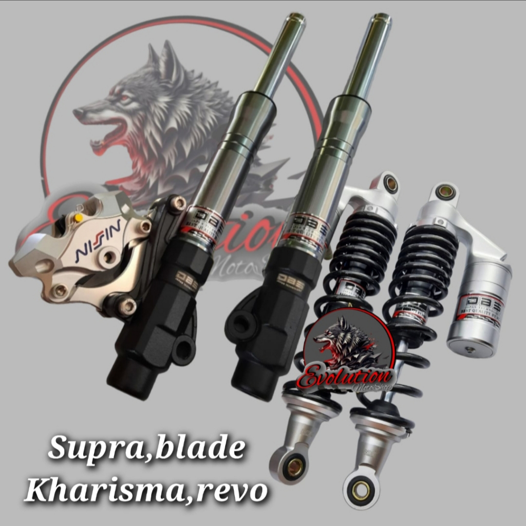 Shock depan SUPRA paket kaliper plus shock belakang tabung shockbreaker REVO - BLADE - KHARISMA paket komplit