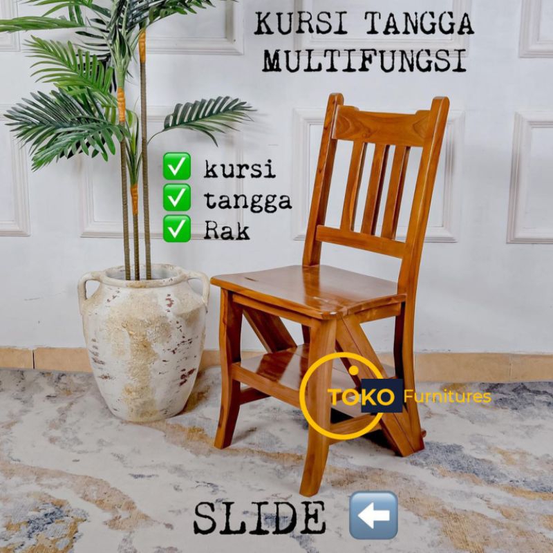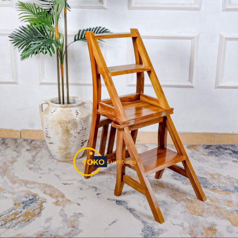 KURSI TANGGA LIPAT KAYU JATI - Kursi Lipat 3in1 Multifungsi