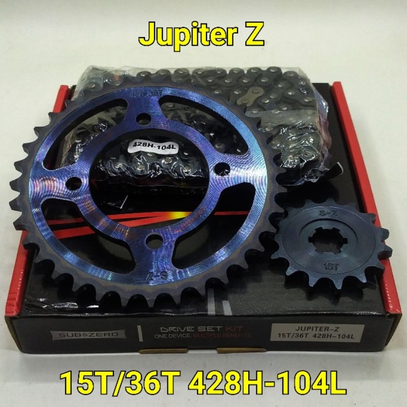 Subzero Gear Set Jupiter Z Vega R New FizR Force 1 Alfa Vega R Lama Paket lengkap Gear Depan Belakang dan Rantai 15T 36T 428H 104L