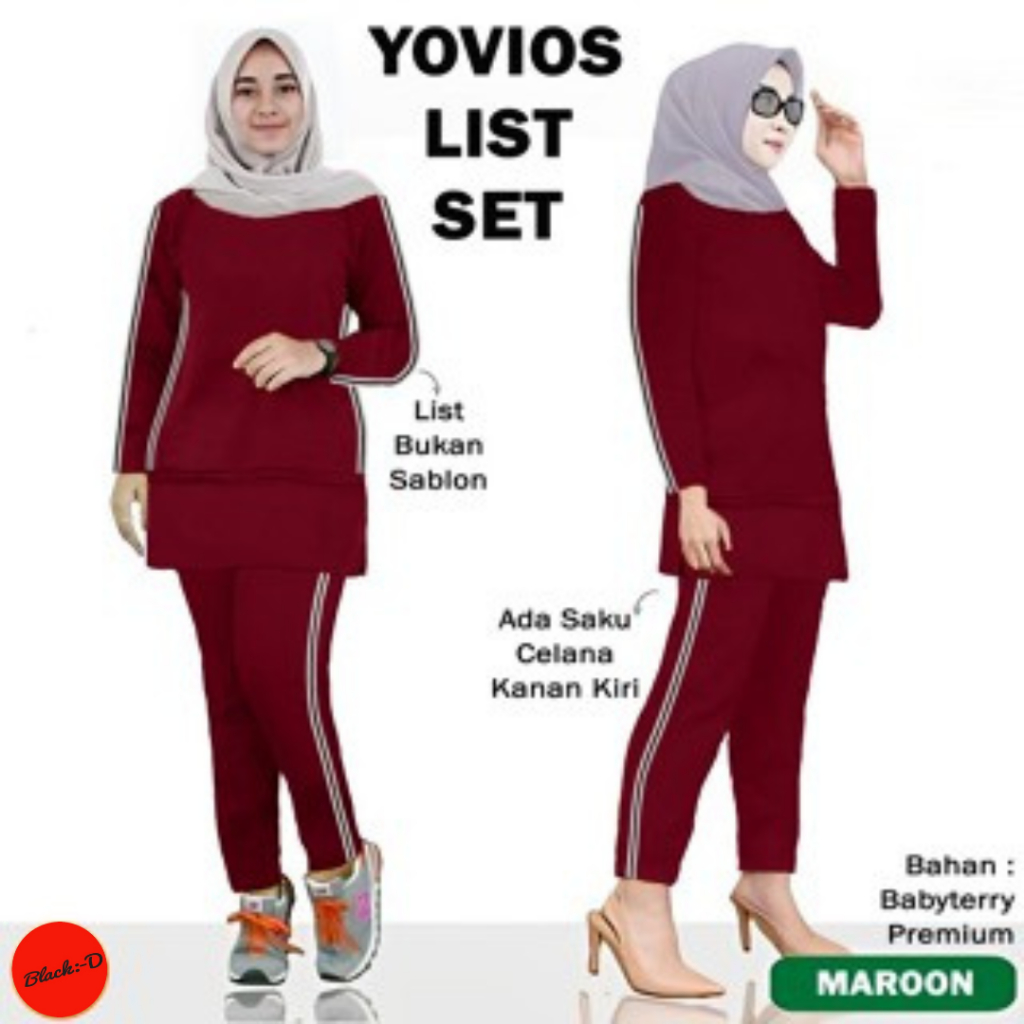 BLADO Baju Setelan Kaos Olahraga Wanita Muslimah Training Babyterry Adem Kekinian Modis YOVIOS LIST