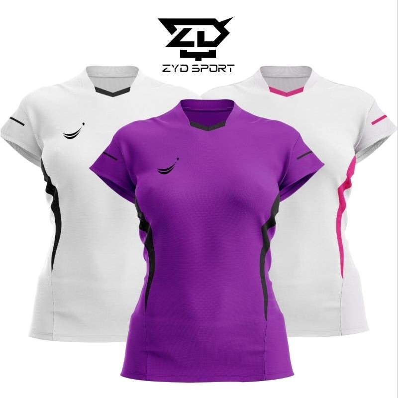 Atasan Baju Olahraga wanita Lengan Pendek Leher V Kaos Senam Aerobik Jogging Lari Gym Voly Volly Cewek