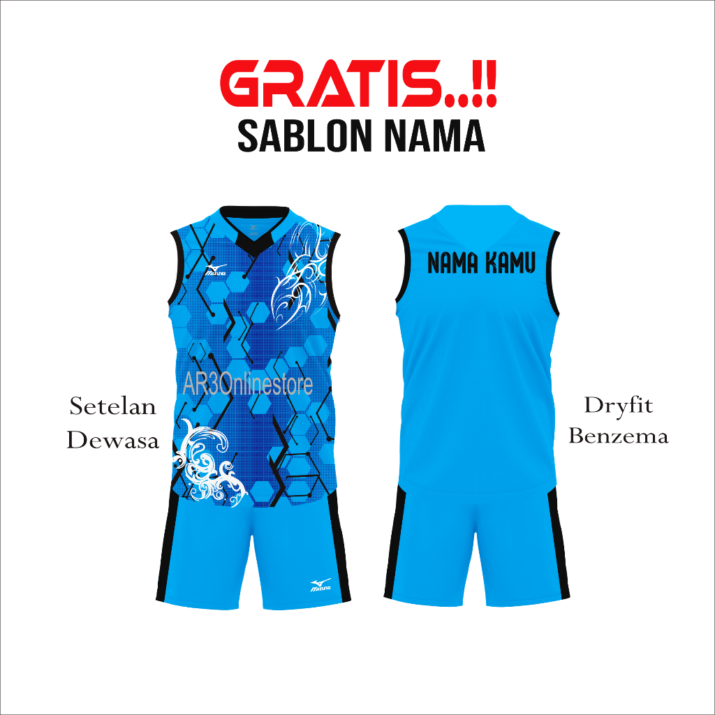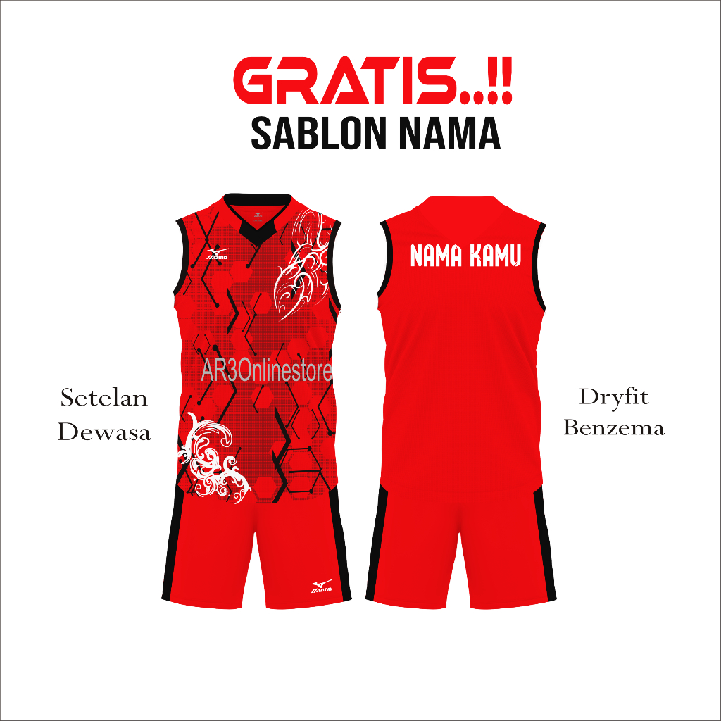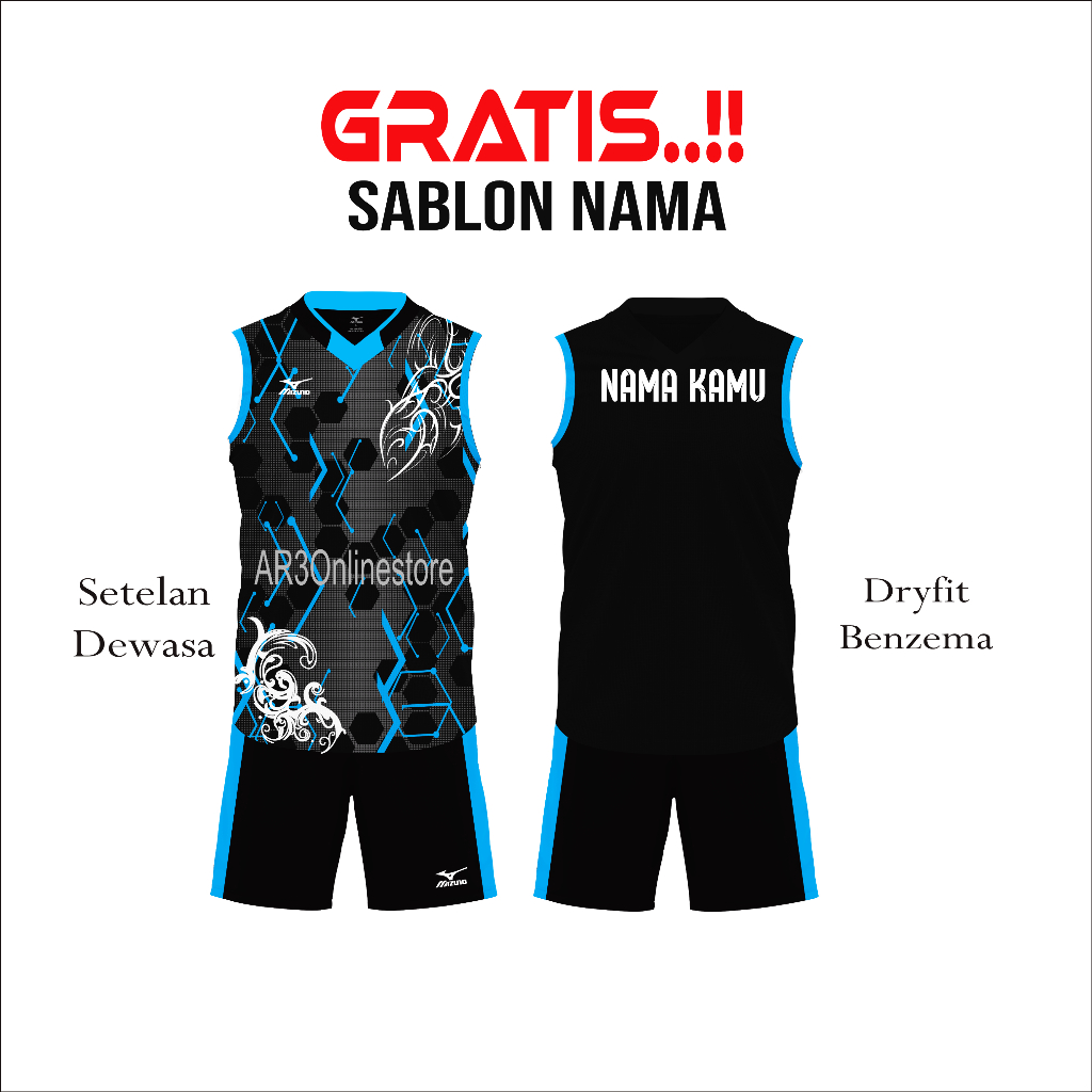 ( FREE SABLON NAMA ) Baju olahraga pria/wanita dewasa kaos voli badminton bulutangkis tenis sepak bola futsal motif terb