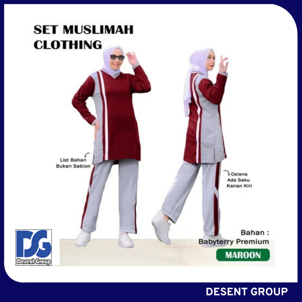 DG | Muslimah Clothing – Setelan Training Olahraga Wanita Lengan Panjang Babyterry Adem Kekinian