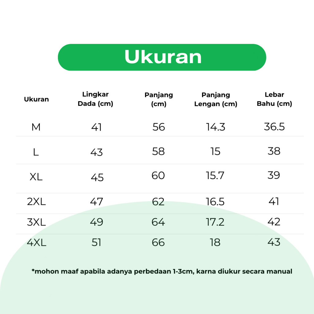 M (42.5 - 47.5KG), L (47.5 - 52.5KG), XL (52.5 - 60KG), 2XL (60 - 67.5KG), 3XL (67.5 - 75KG), 4XL (75 - 80KG)