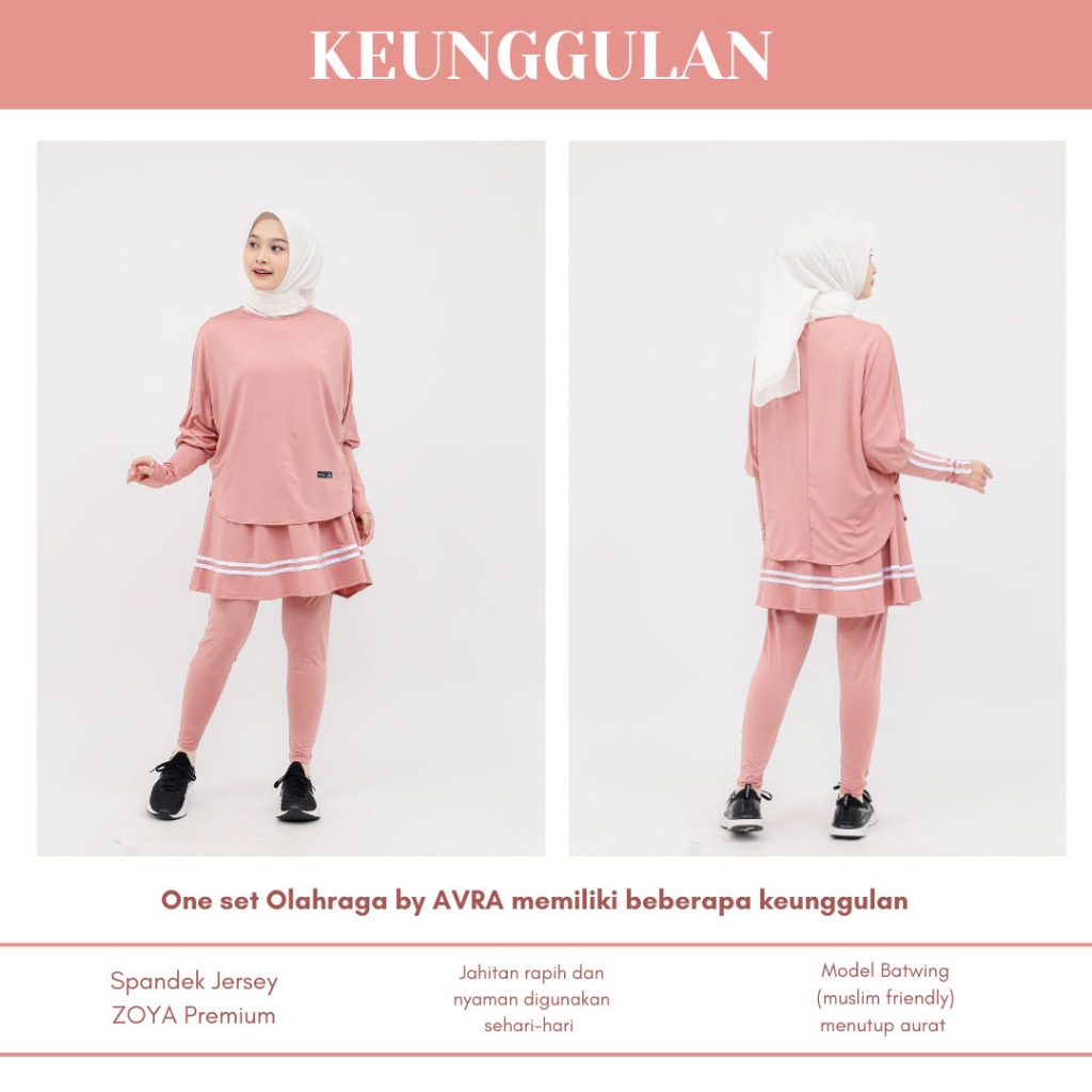 AVRA - Baju Olahraga Wanita Muslimah Setelan Atasan Senam Cewek Legging Rok Skirt Perempuan Premium