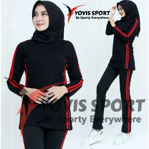 Setelan Kaos Fitnes Lari Gym Olahraga Wanita Ladies Yovis Sport / setelan baju senam wanita