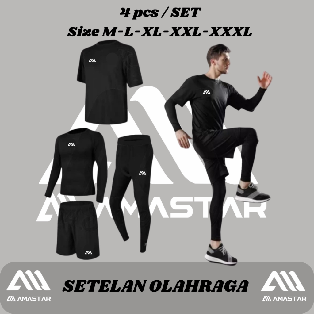 4 IN 1 Atasan Kaos Jersey Baselayer Celana Pendek Lejing Sepak Bola Badminton Running Renang Tenis