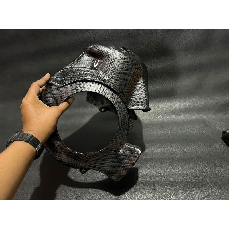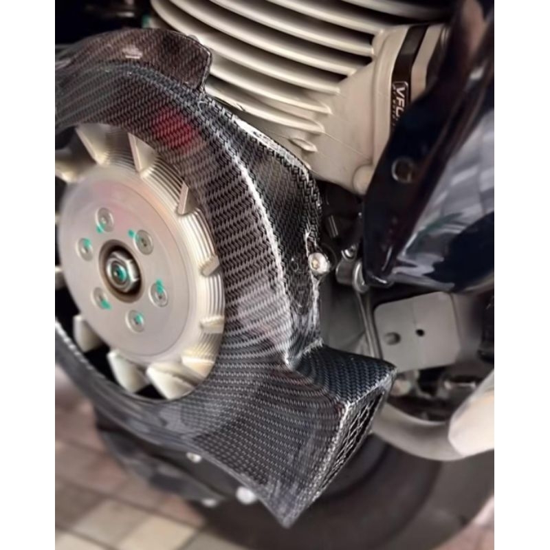 Cover tut blok head & kipas magnet sepaket vespa smallframe pts spesial darling el airscoop Racing Carbon paint hitam ba