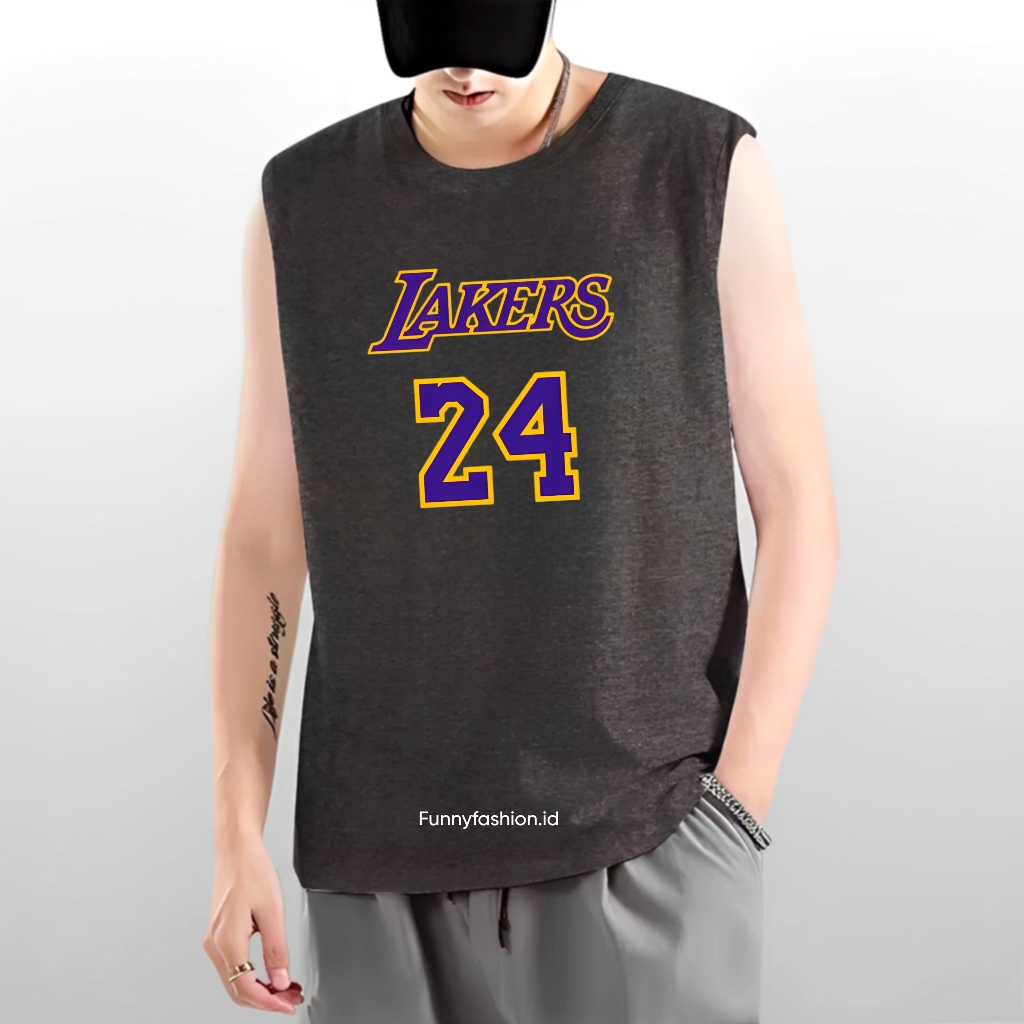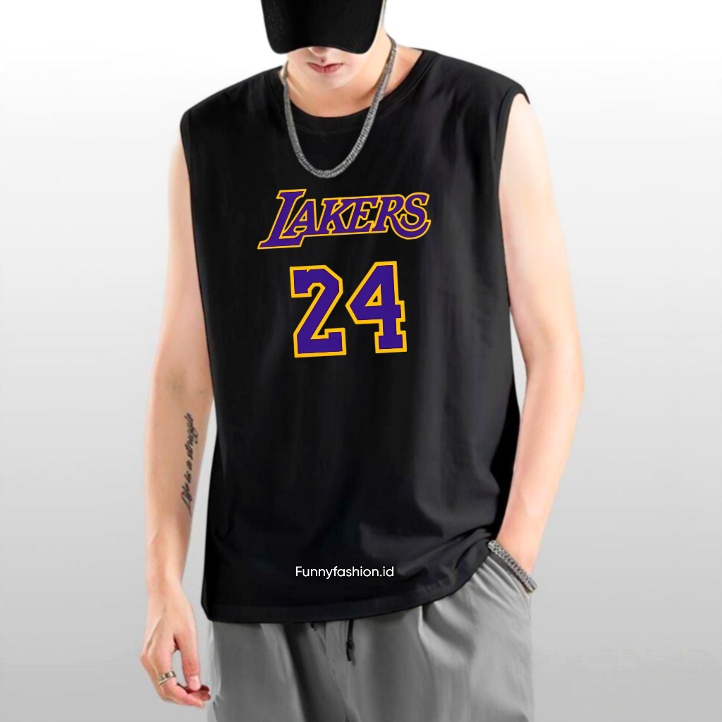 Tanktop Pria Lakers 24 – Singlet Cowok Gym Santai – Baju Tanpa Lengan Keren Distro
