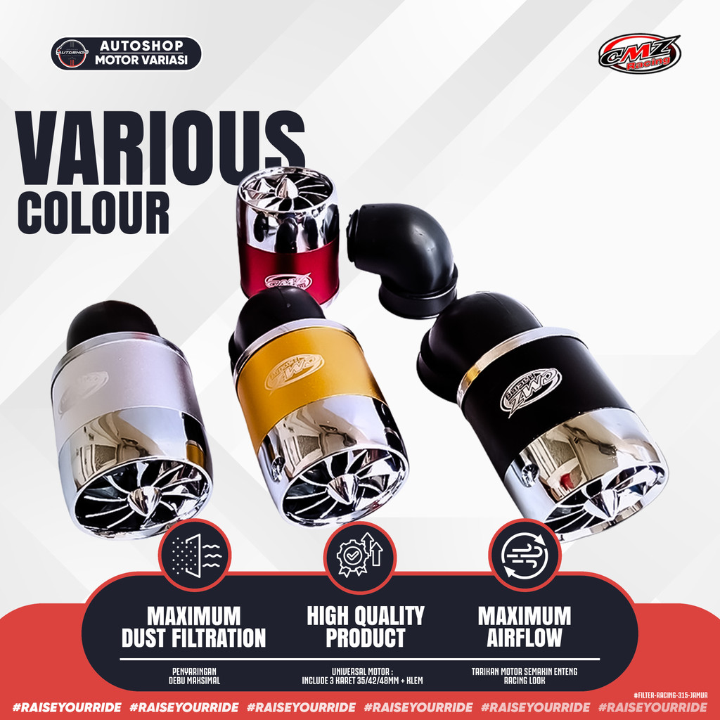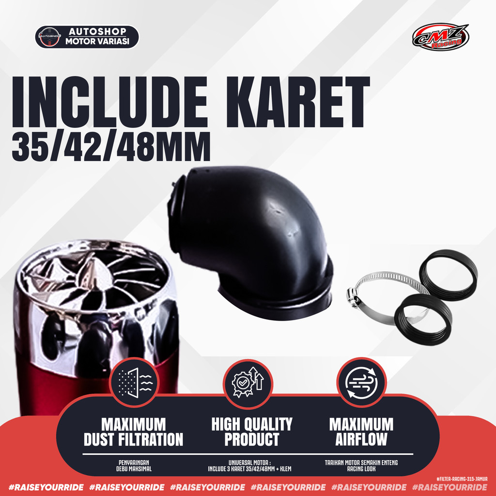 Filter Racing Karburator Jamur Bengkok Turbin PE 24 26 28 Diameter 35 42 48MM – CMZ Original