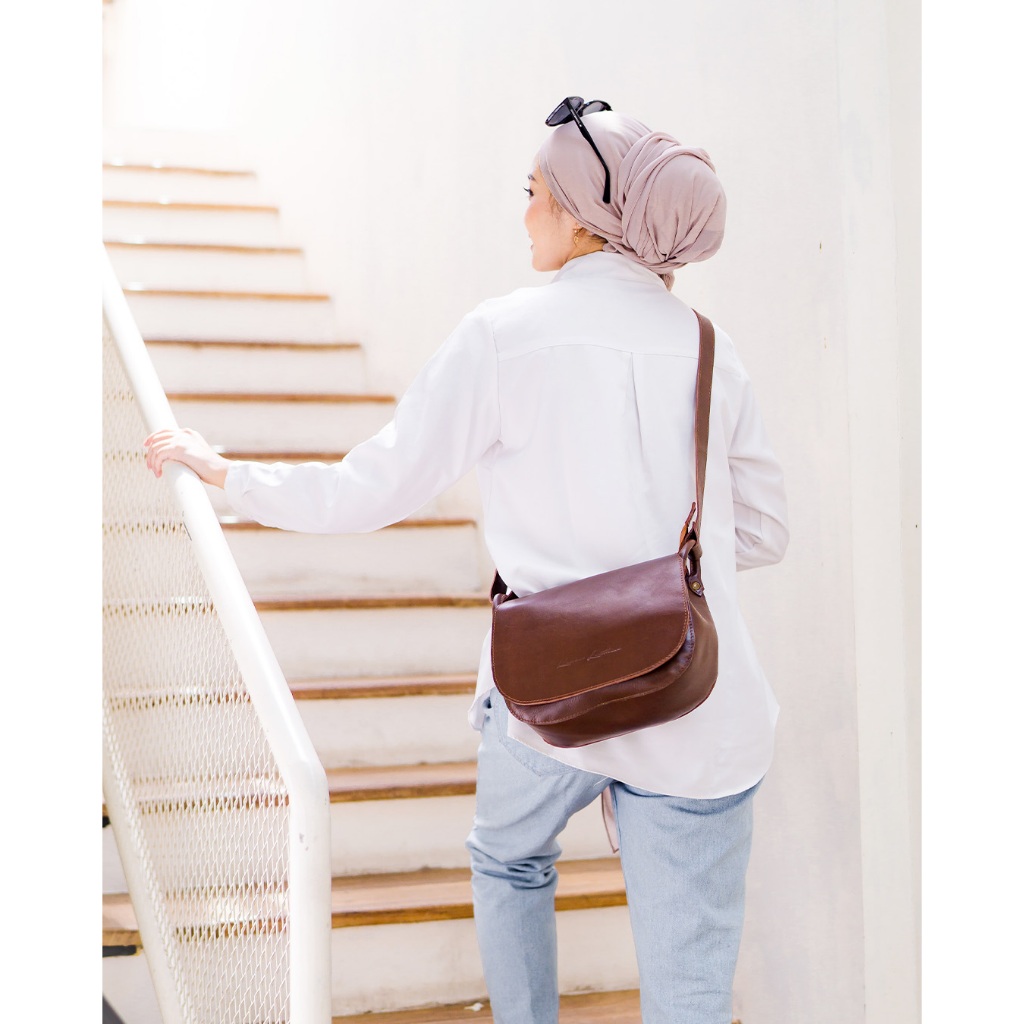Kenes Leather Sling Bag Wanita Tas Selempang Kulit Asli Lesly - Free Grafir Nama