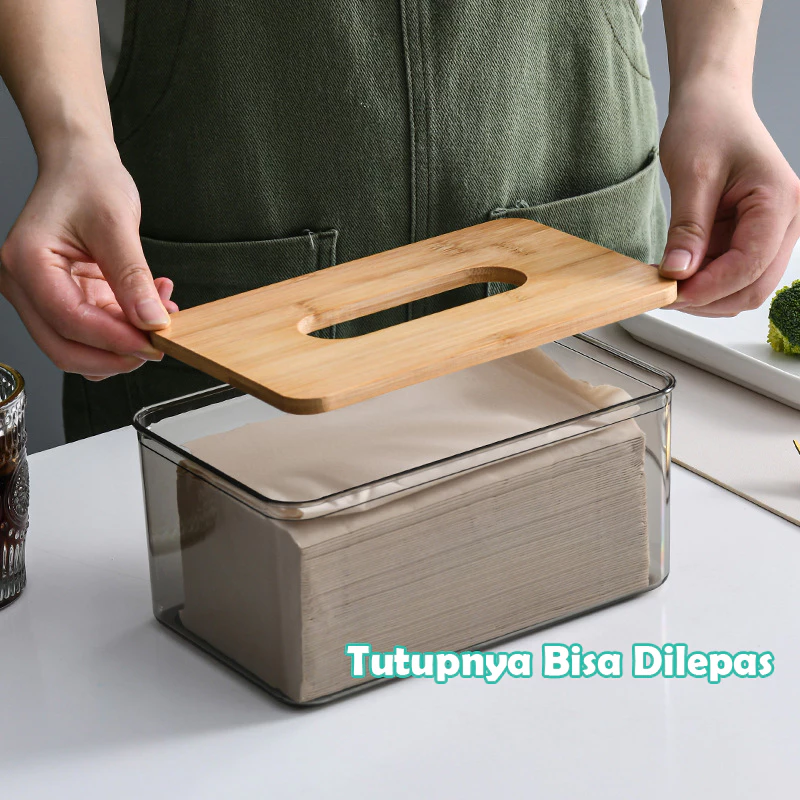 Tempat Tisu Aesthetic Kotak Tisu Kayu Transparan Kotak Tissue Kamar Mandi Dapur Tempat Tisue Organizer Modern