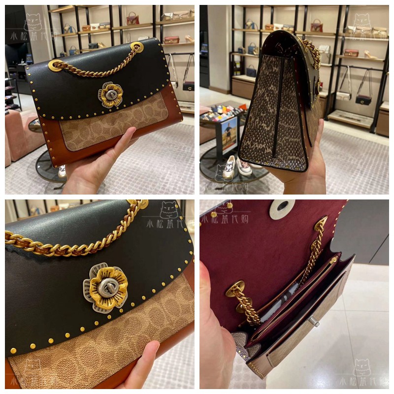 Coach Parker Shoulder Bag In Colorblock Signature Canvas With Rivets And Snakeskin Original Bag Tas