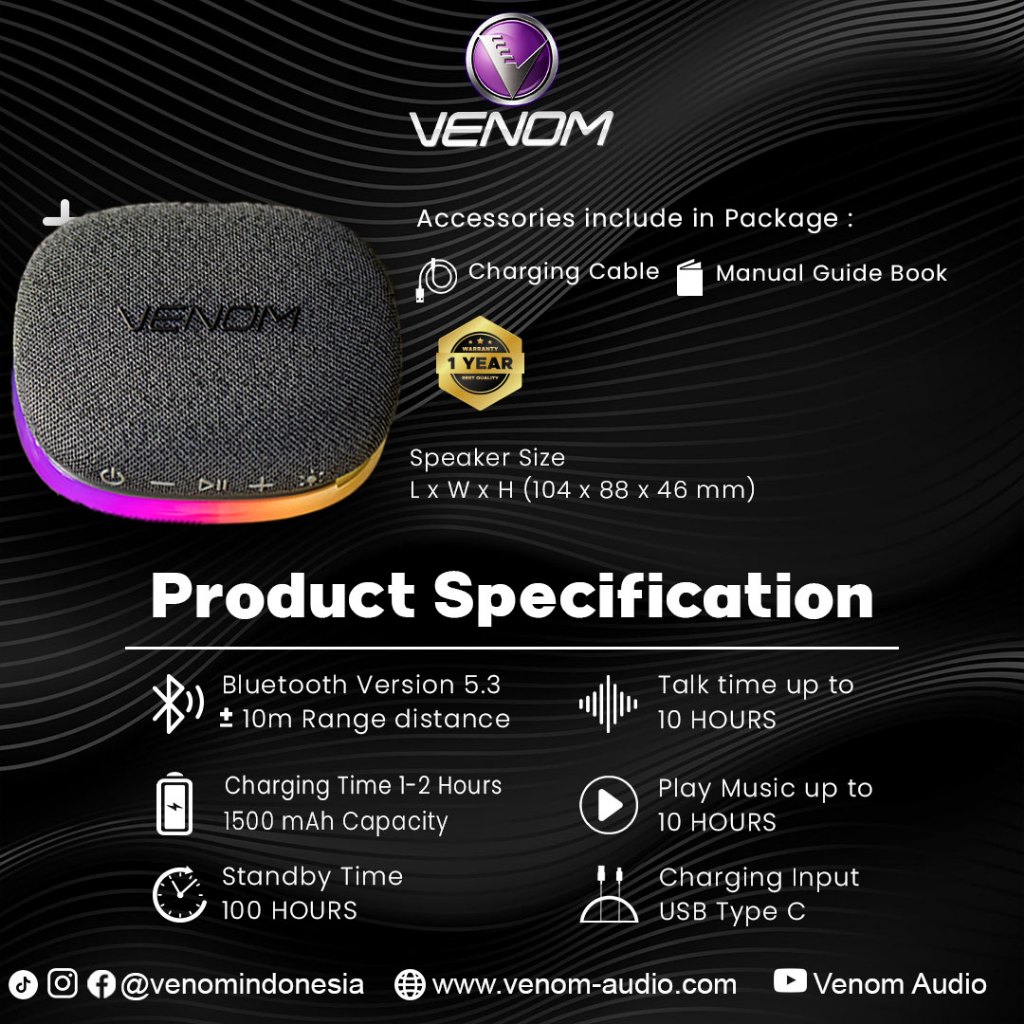 Venom Gear Glow VGG Speaker Bluetooth Portable Bass with Ambient Lights
