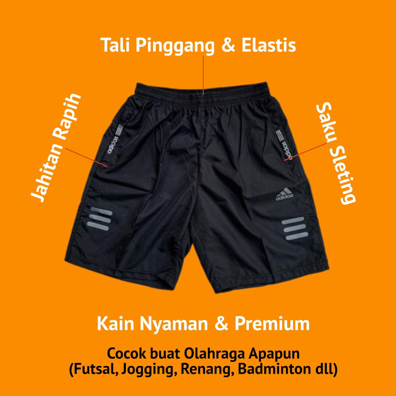 Celana Pendek Olahraga Saku Resleting Pria Wanita Running Gym Sport Kolor Volly Futsal Bulu Tangkis Jogging Bahan Berkul