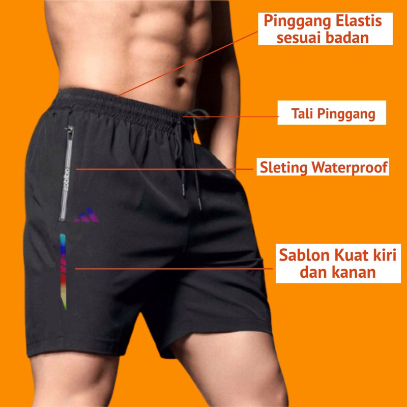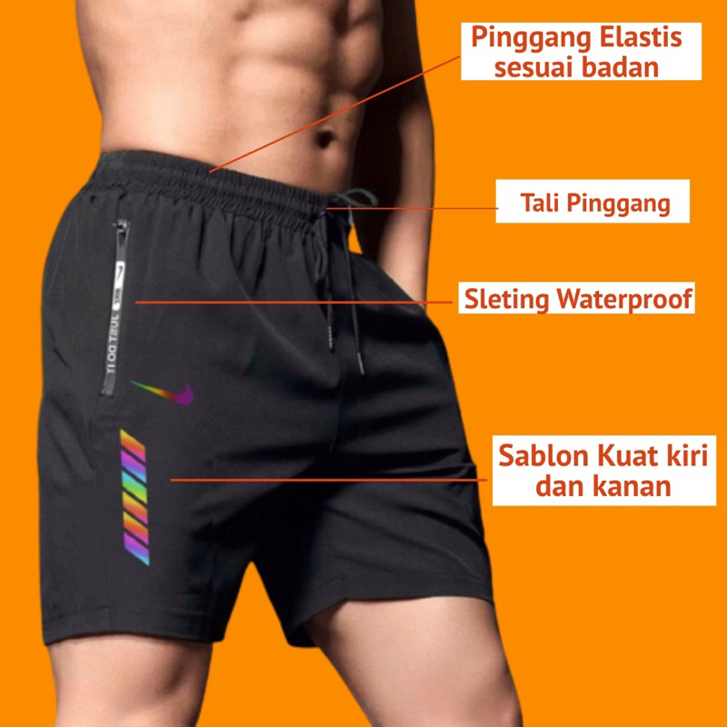 Celana Pendek Olahraga Parasut Motif Micro Import Saku Resleting | Celana Pendek Parasut Olahraga Saku Resleting Pria Wa