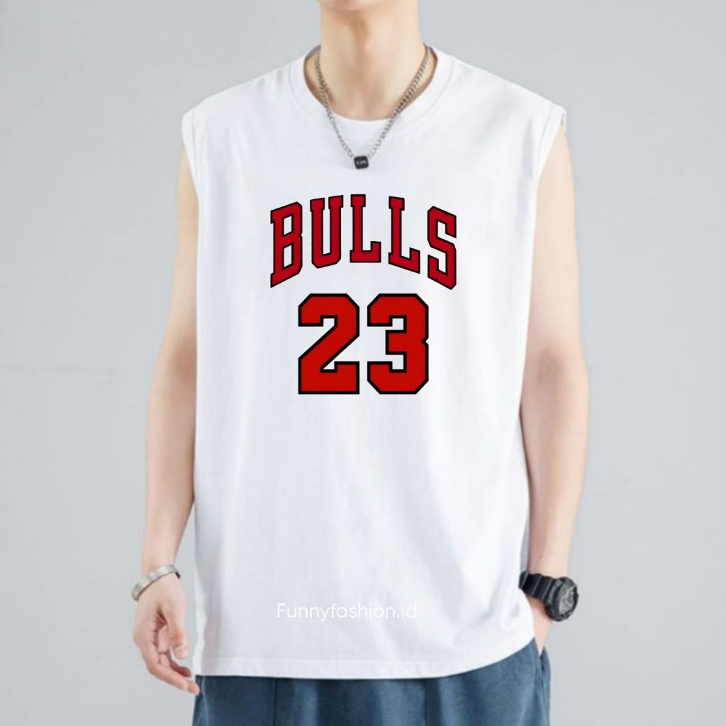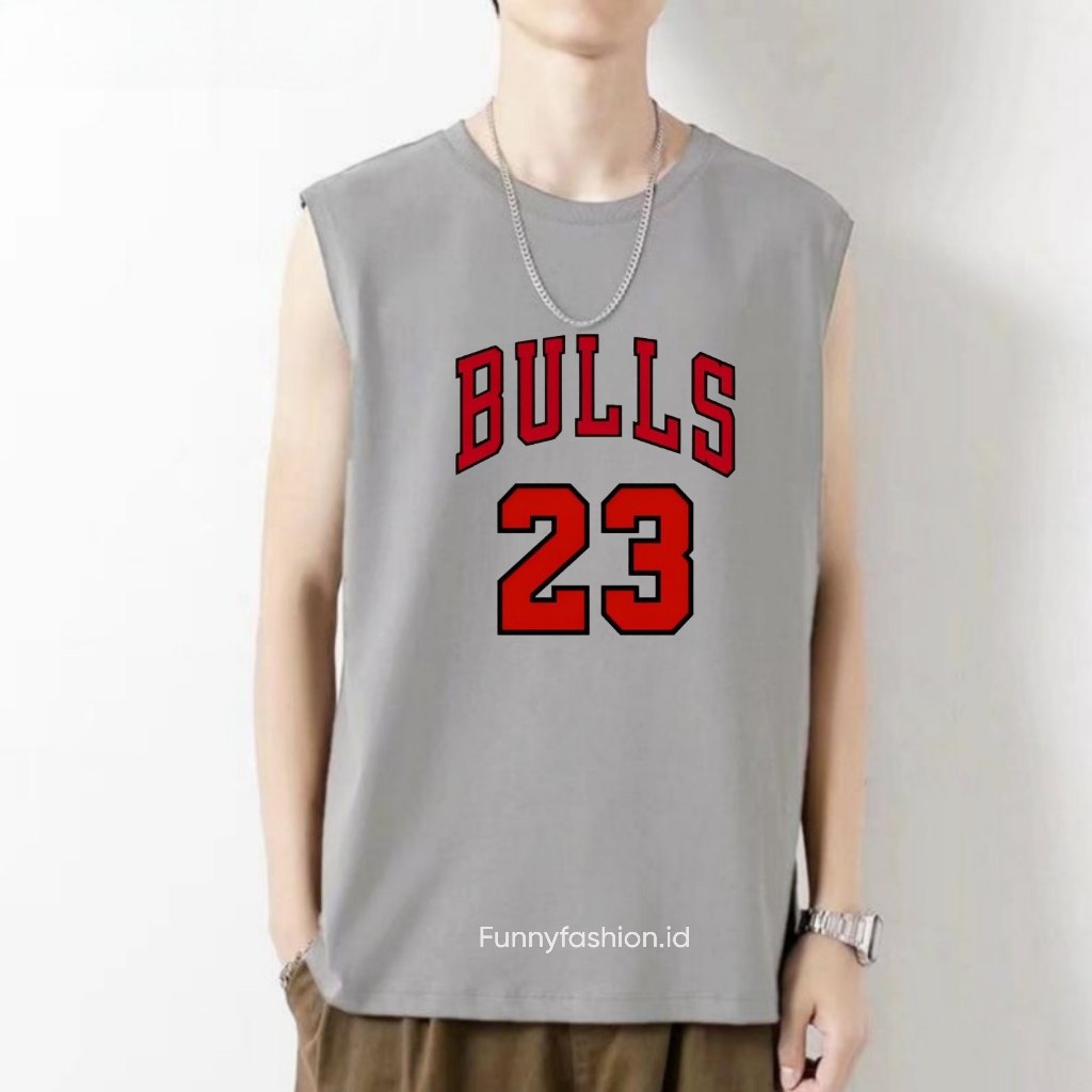 Funnyfashion Singlet Bulls 23 – Baju Gym Pria Dewasa – Kaos Singlet Distro Keren