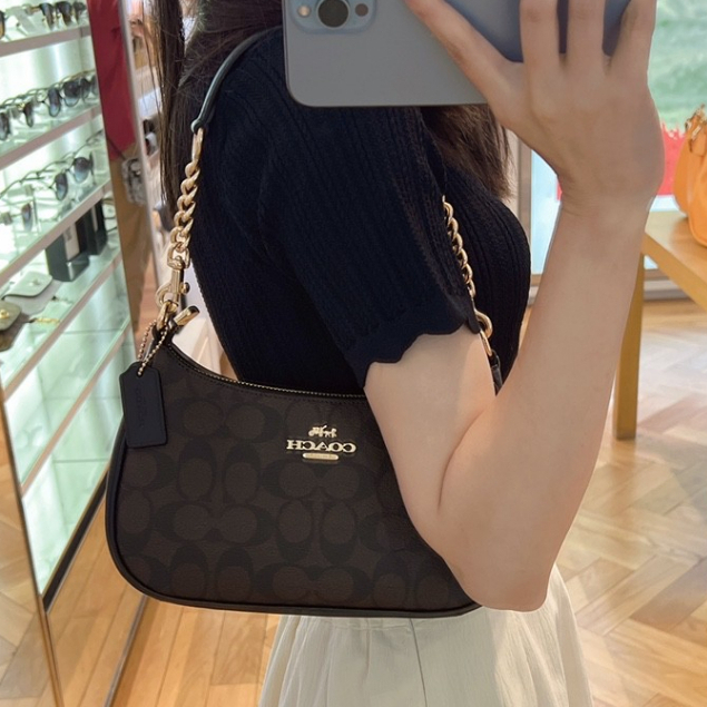 Coach Teri Shoulder Bag In Signature Canvas Coach Tas Selempang & Coach Bahu Wanita Coach Sling Bag
