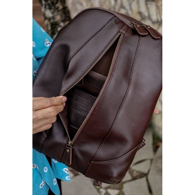 Ransel Unisex Tas Punggung Kulit Sapi Asli Backpack Naura Laptop 14 Inch
