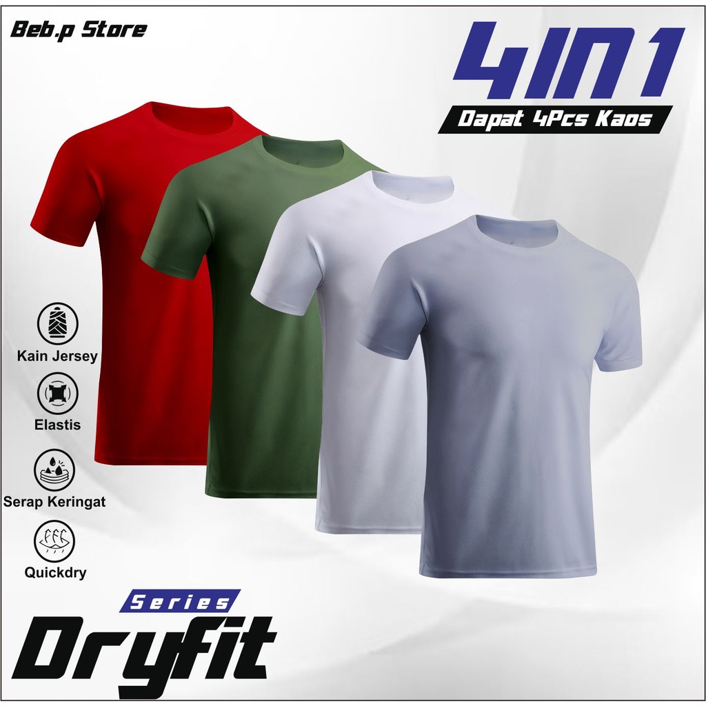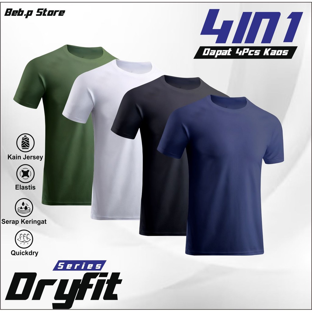 Paket 4 Baju Olahraga Dryfit Polos Nyaman Cepat Kering Kaos gym body fit running shirt baju Pria