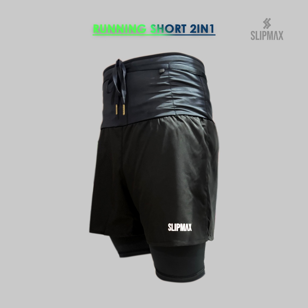 SLIPMAX Celana Lari 2in1 Olahraga Running Belt and Short Compresion