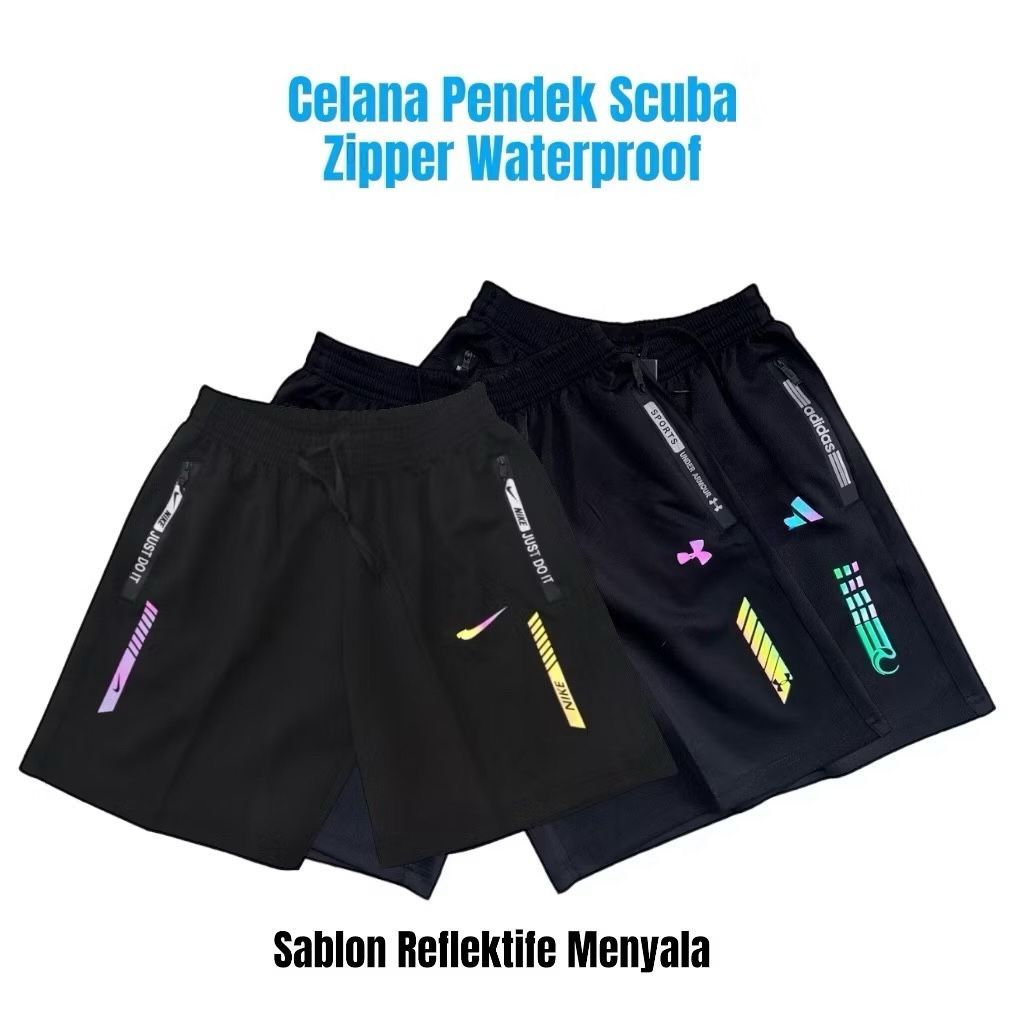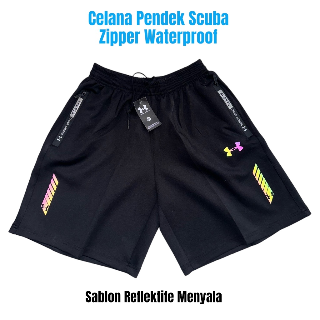 Celana Pendek Scuba Olahraga Saku Resleting Running Gym Jogging