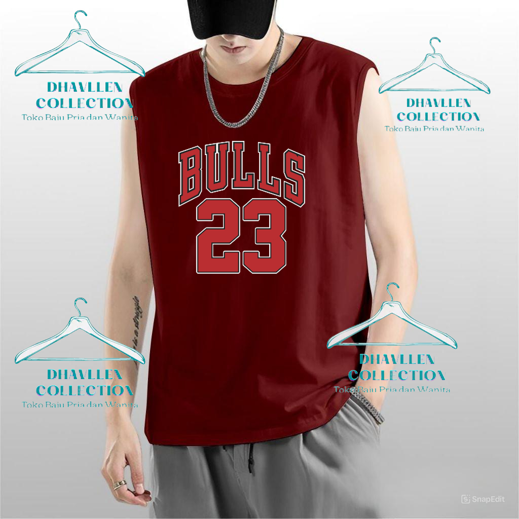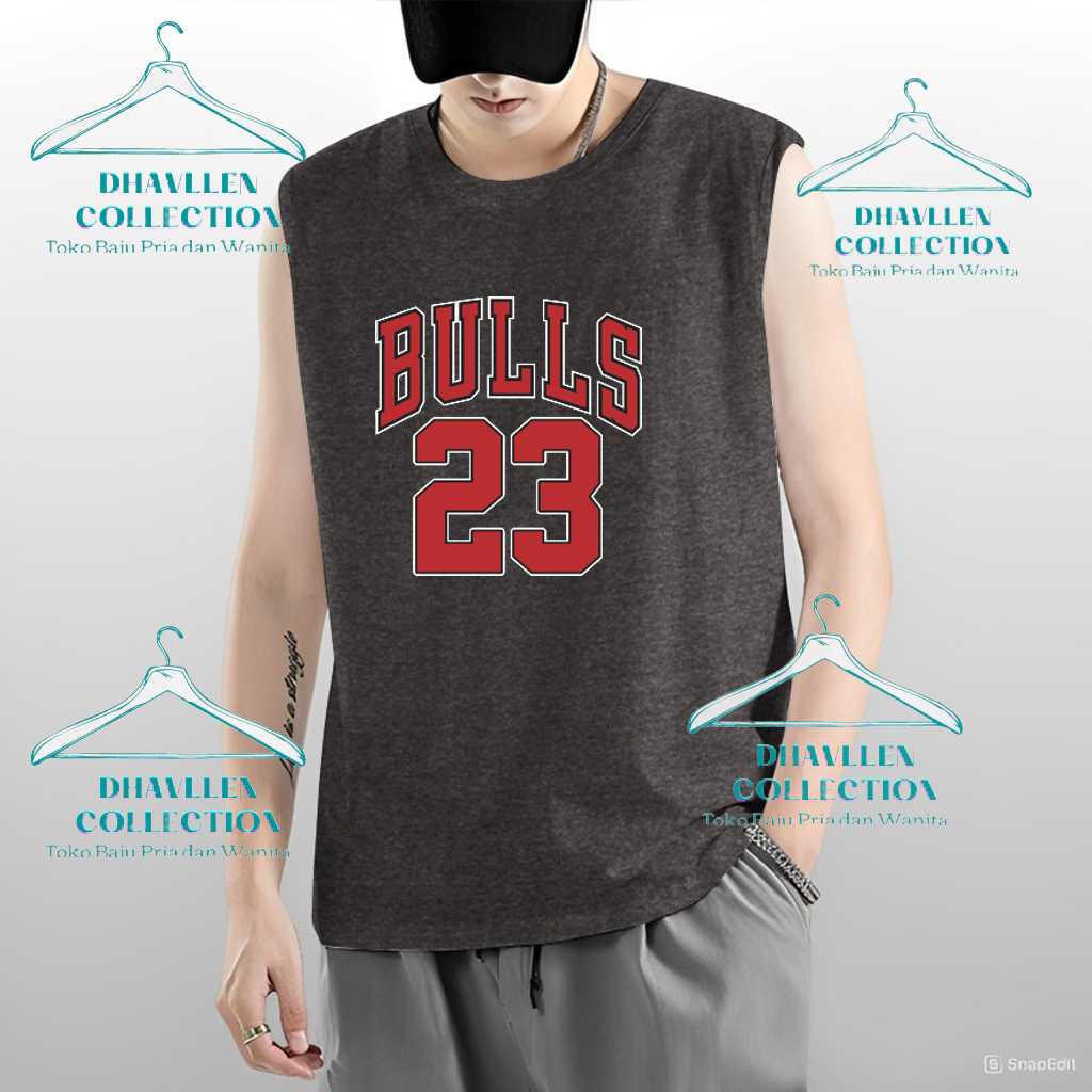 Kaos Baju Singlet Pria Bulls 23 / Kaos Santai Pria Dewasa / Kaos Pria Tanpa Lengan / Baju Singlet Gym Pria / Singlet Cow