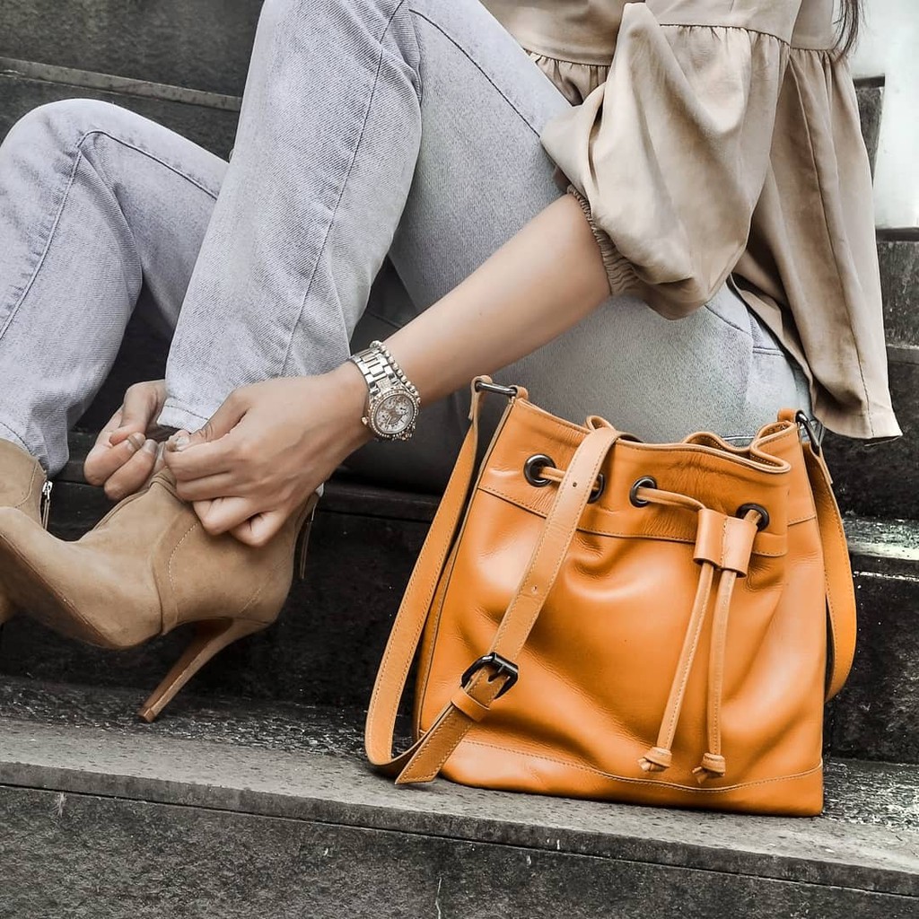 Gk Basic Drawstring Bucket Bag - Tas Wanita Kulit Asli/Tas Serut Kulit/Bucket Bag