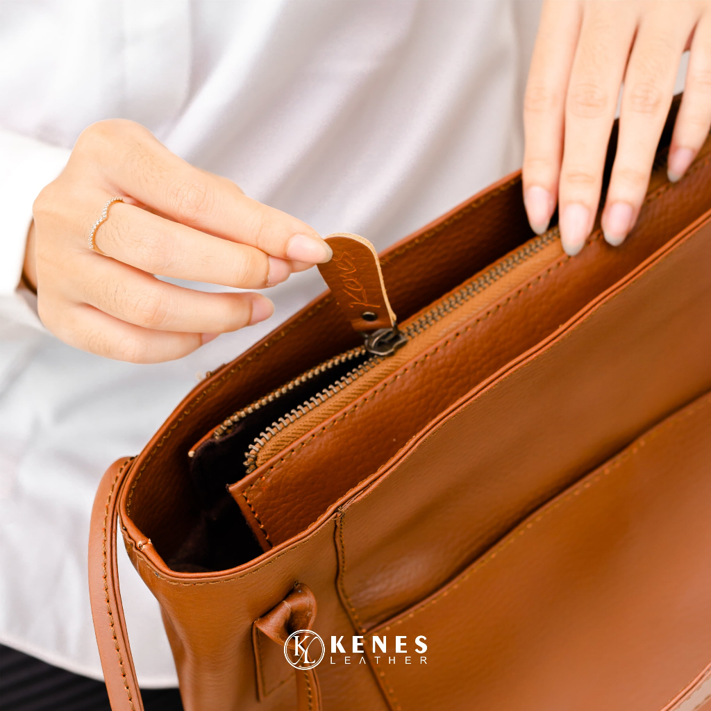 Kenes Leather Tote Bag Wanita Tas Bahu Kulit Asli Minerva - Free Grafir Nama