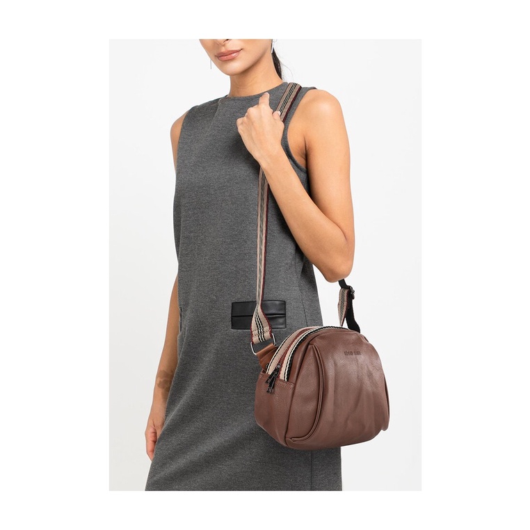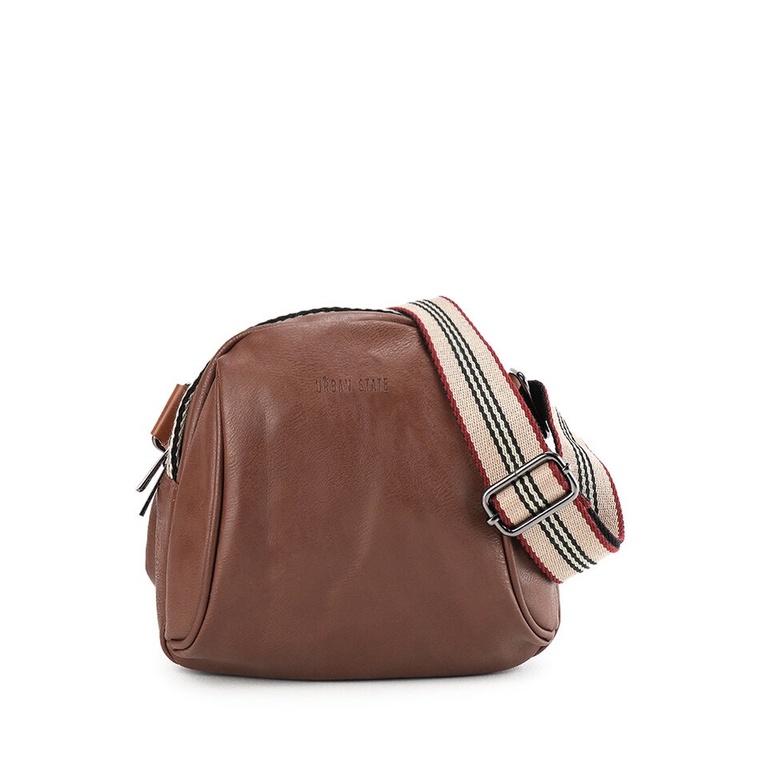 Urban State - Distressed Leather Pouch Trim Crossbody Bag - Camel